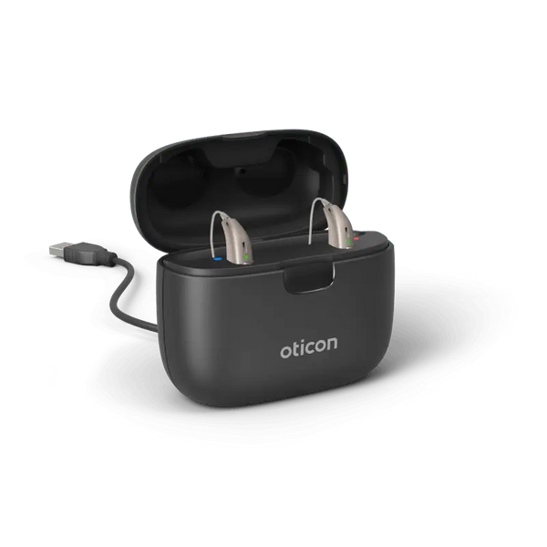 The Oticon SmartCharger offers ultimate convenience for users of Oticon rechargeable hearing aids. Built with a sleek, durable design, it provides both charging and protective storage in one portable unit. Simply place your hearing aids in the dock no need to worry about cables or separate batteries.