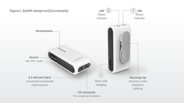 Oticon EDUMIC Wireless Remote Microphone System Support Children with Hearing Loss in Classroom, Restauran, Noisy Environment